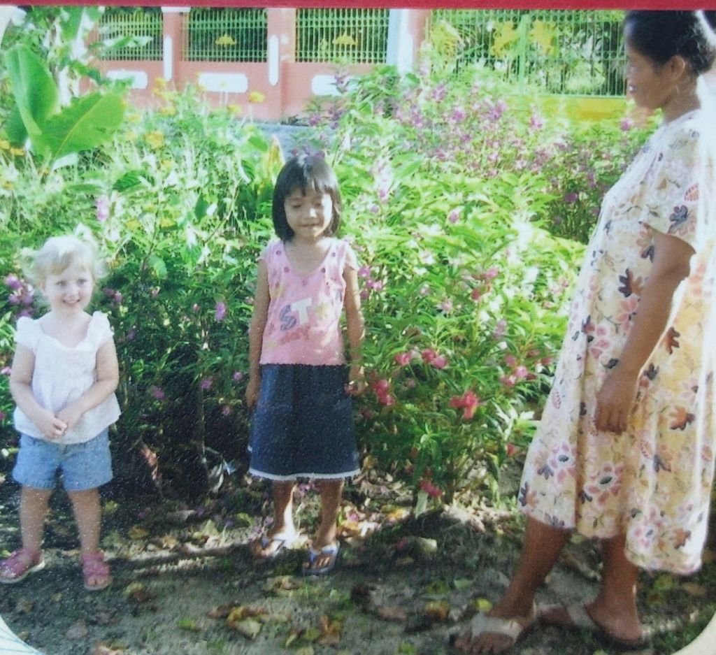 Samantha’s favorite person to visit in Palangkaraya, Indonesia, lived in a house across the street and two houses down. Most of the houses on our street were made from concrete and ceramic tile, which helped keep the people in them cooler. But this house was made completely of wood. There were gaps in the floor large enough for Samantha’s two-year-old ear-old feet to fit in. There was one light bulb. There was no ceiling fan. But what there was made it Samantha’s favorite outing. There was a sweet girl Samantha’s age who had a very gracious and never-hurried mom. And behind their house was a secret garden, where they grew flowers to sell in the market, populated by their flock of chickens on pest patrol duty. They were organic before organic was cool, because a flock of chickens was cheaper than chemicals. Samantha loved this unhurried floral wonderland and playing with sticks in the dirt in the midst of it with her friend. This sweet mom always shared food with us when we came, food she couldn’t really spare, no matter what time of day we stopped by. I asked my helper how we could do something without embarrassing this generous woman, and we followed her suggestion of bringing flavored powdered milk drinks with us to add to the feasts. I learned true hospitality from this sweet neighbor. She was never embarrassed by her surroundings, and always had time and treats to share. Even my two-year-old could sense we were welcome there.