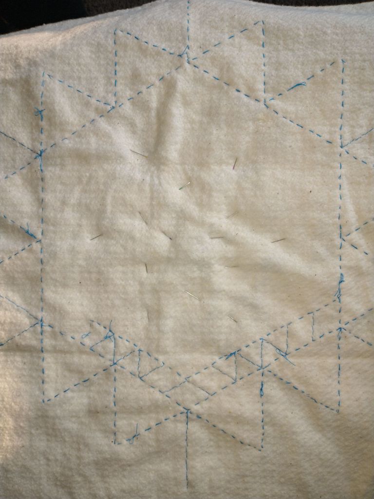 I am still making some progress quilting along the seams of my pillow top, which is making a fun pattern on the back through the quilt batting. Once I sew up the pillow no one will see it again so I thought I would share it!