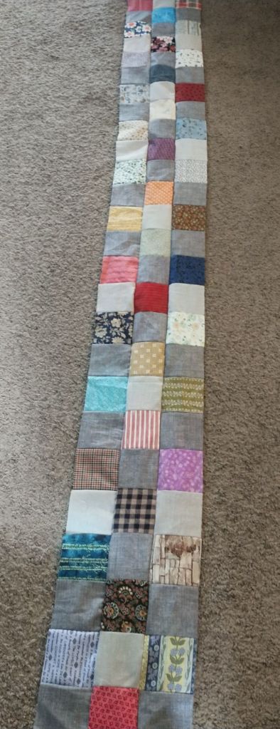 I am in Amish country, one of the most crafty places in the world! I have made some progress on my quilt, with 10 rows assembled and 3 rows sewn together.